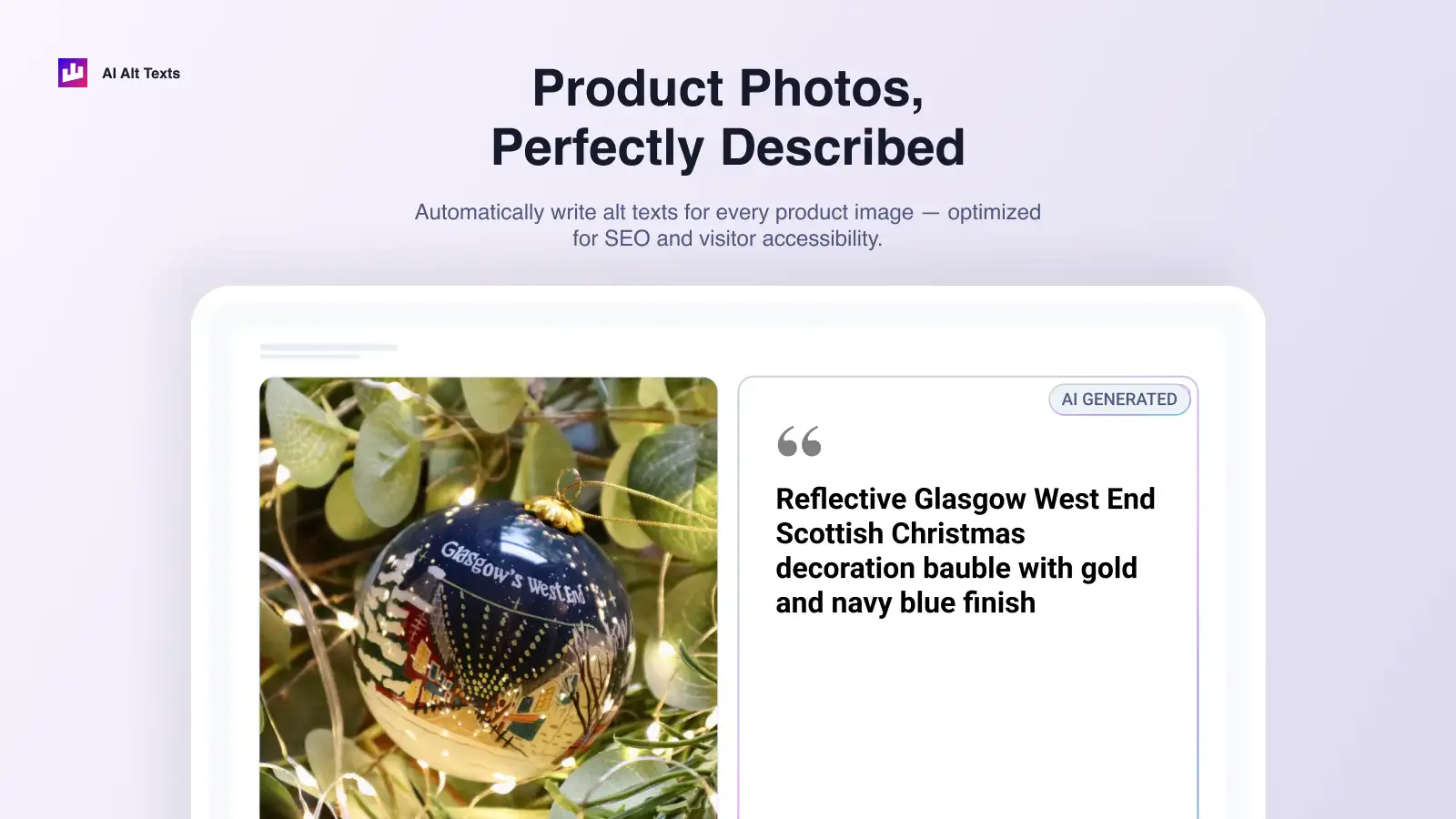 The AI understands each page's context to generate accurate, SEO-optimized descriptions — not just image captions.